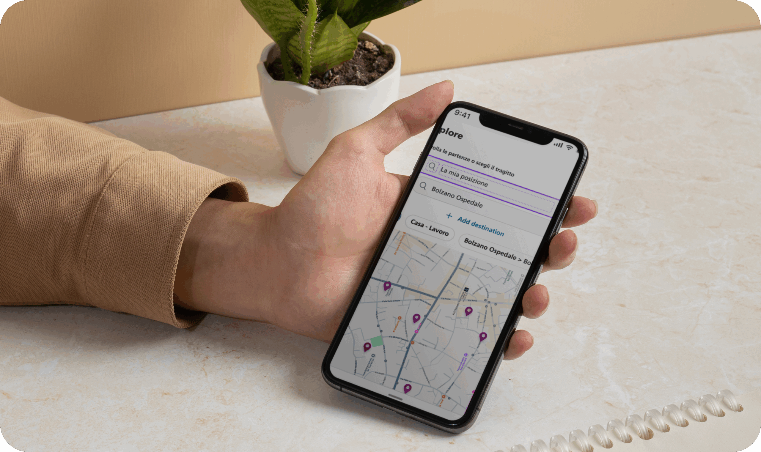 Un motore avanzato di routing consente all’utente di pianificare percorsi combinando diverse modalità di trasporto: TPL, car sharing, bici, monopattini e treni. Viene proposto il tragitto ottimale in base a tempo, costo, emissioni e preferenze personali, con aggiornamenti in tempo reale su ritardi o deviazioni.