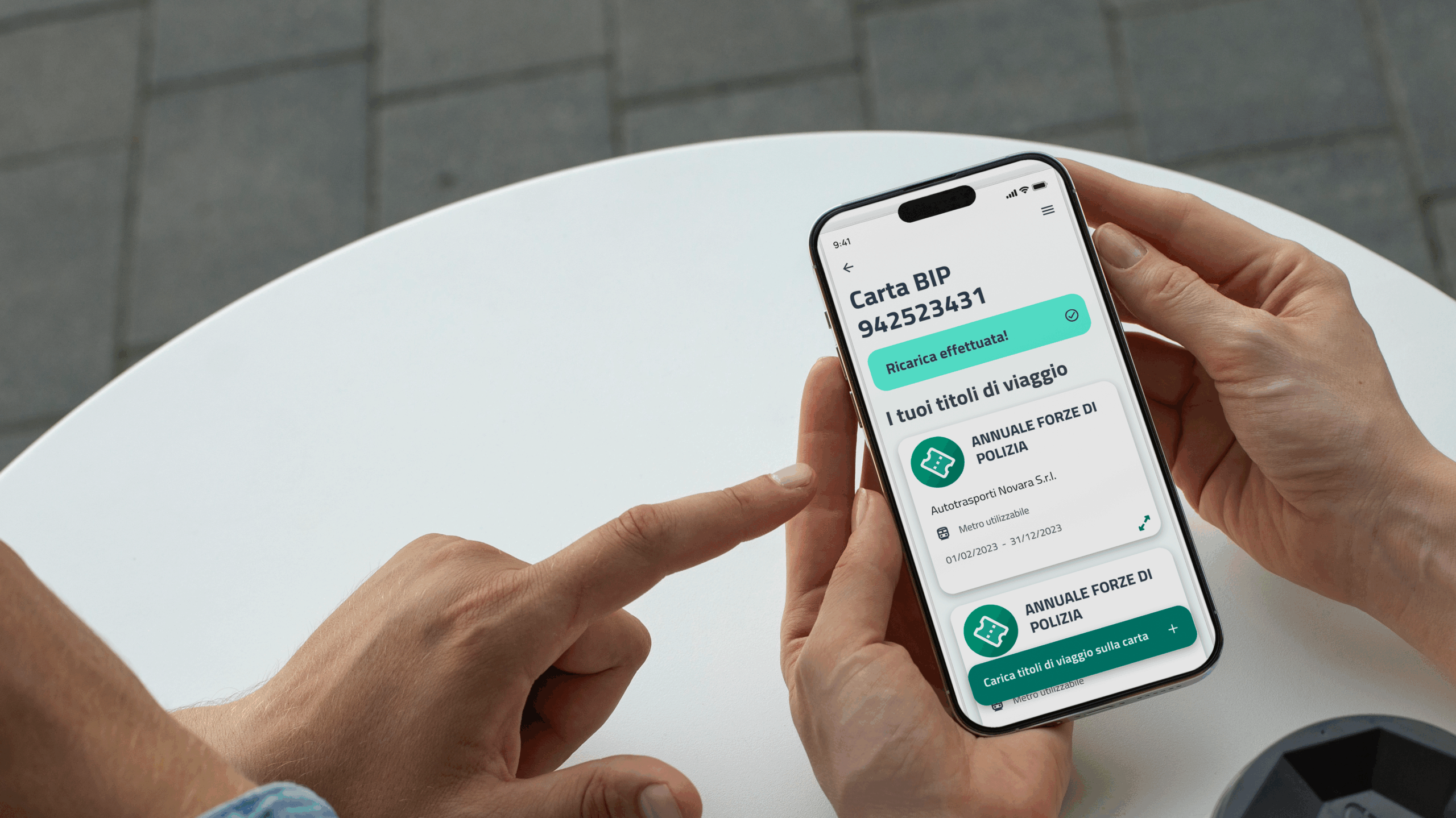 Il sistema consente l’acquisto, la validazione e la ricarica di un biglietto digitale valido su tutti i mezzi di trasporto pubblico della regione (bus, metro, treni regionali). Gli utenti possono gestire il proprio portafoglio di titoli di viaggio direttamente tramite l’app. In Piemonte, è stata realizzata anche l’integrazione NFC per la ricarica di card fisiche da parte di operatori autorizzati.
